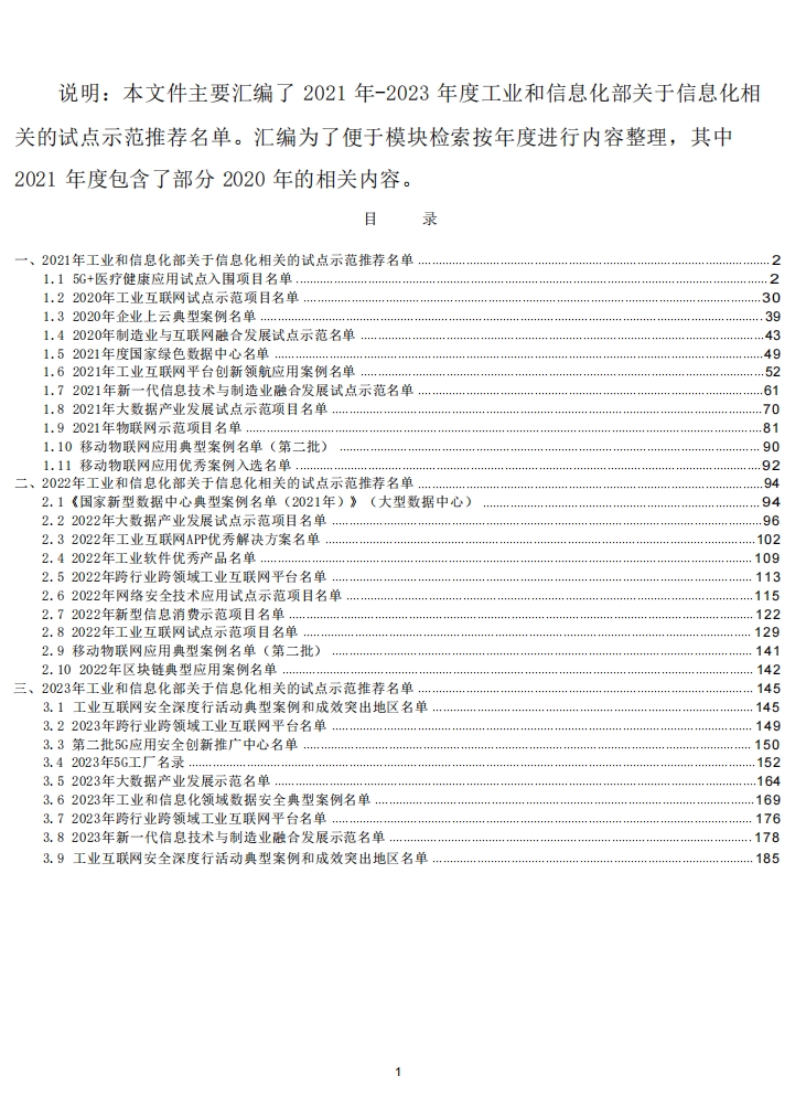 >工业和信息化部关于信息化相关的试点示范推荐名单汇编