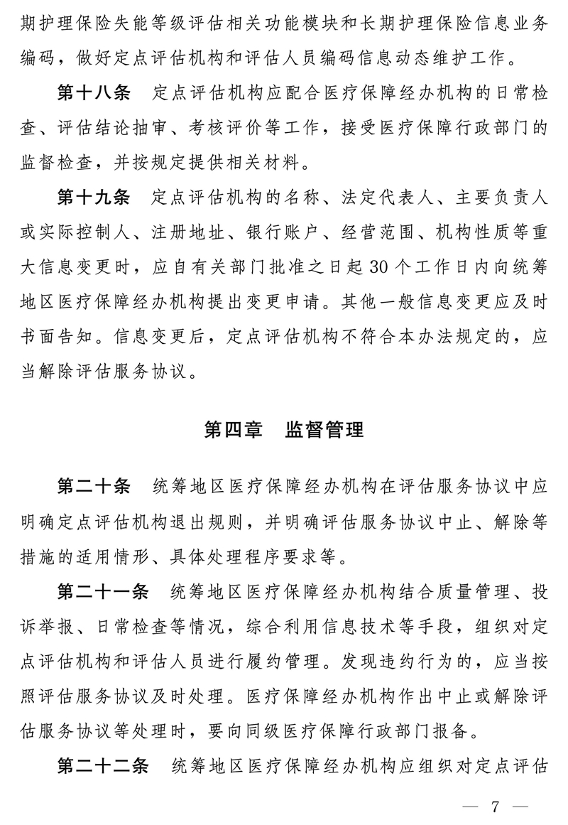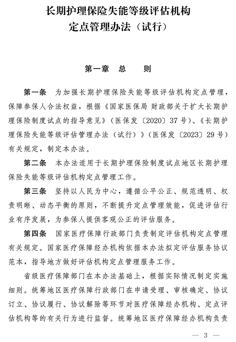 >国家医疗保障局关于印发《长期护理保险失能等级评估机构定点管理办法(试
