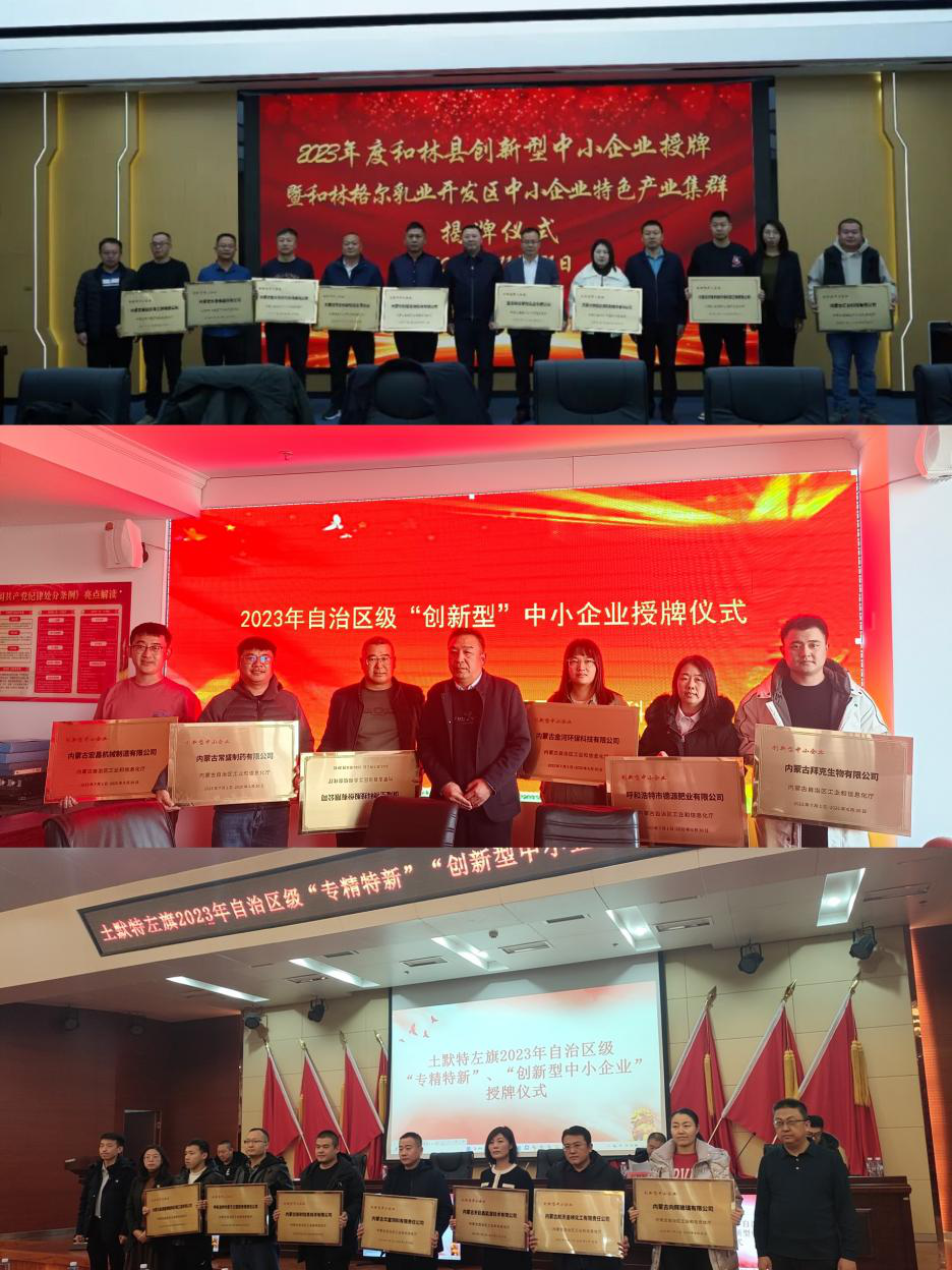 近日,市工信局组织各旗县区工信主管部门对已获评2023年度国家级和自治区级“创新型”中小企业、“专精特新”中小企业、专精特新“小巨人”企业举行授牌仪式。